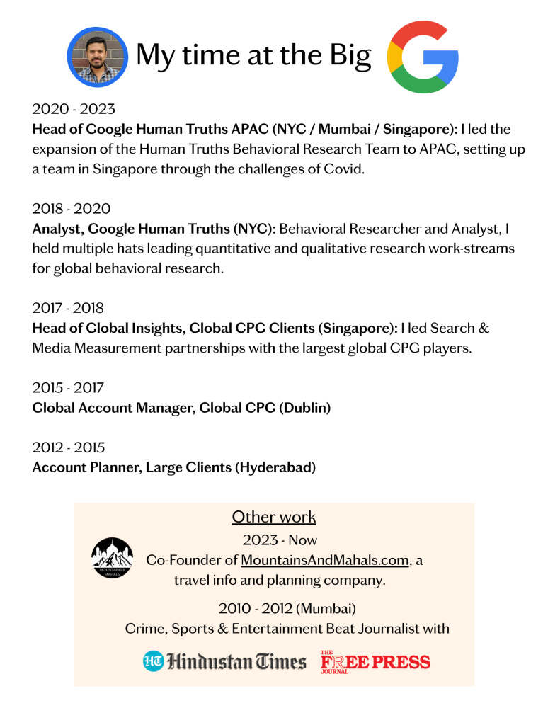 From a small town in Northeast India called Shillong, I built a global career as a behavioral researcher at Google for over a decade across India, Ireland, Singapore and the US. I was leading a team of behavioral researchers when I was impacted by the mass layoffs of 2023, a happy accident in my life.